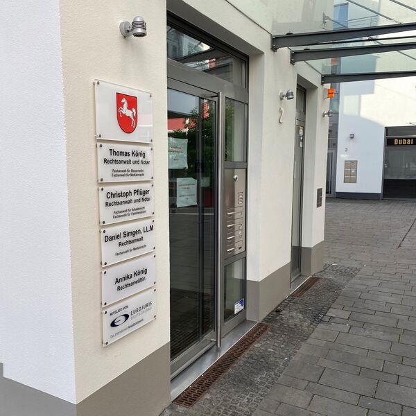 - Im Erdgeschoss am Aufgang am gelben Kassenautomaten rechts halten, nach ca. 20 m befindet sich unsere Kanzlei linker Hand (Schilder am Eingang); erster Stock